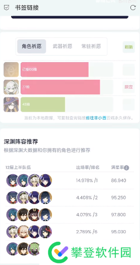 4、紧接着我们需要再次点击书签页面,然后就会跳转出原神抽卡分析界面在手机上。