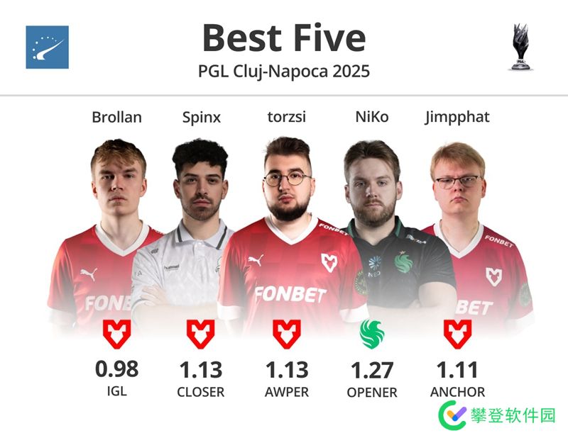 只有xertioN,不幸地再次与NiKo同处一个位置,遗憾落选,而Brollan则因在首次以队长身份带领完整阵容夺冠而获得认可。