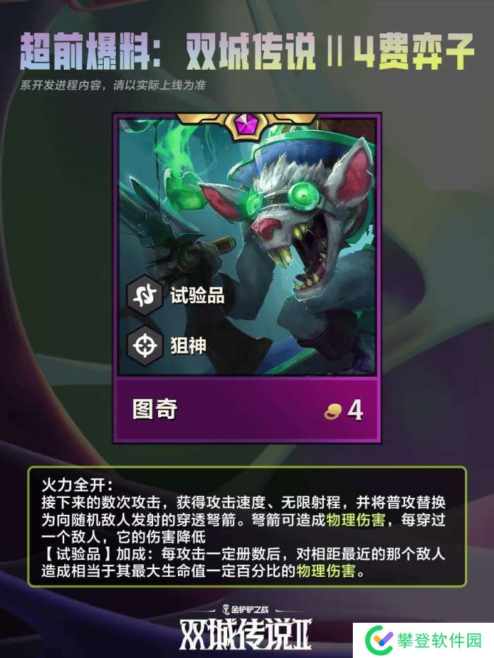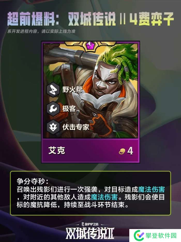 金铲铲之战双城之战24费棋子有哪些?金铲铲之战即将在11月22日开启双城之战2新赛季,在这个赛季将上线不少的新棋子,那么大家知道都有哪些4费棋子吗?这些棋子的技能是什么呢?下面快跟随小编一起来看看金铲铲之战双城之战24费棋子技能吧。