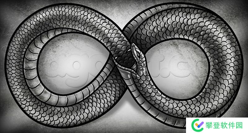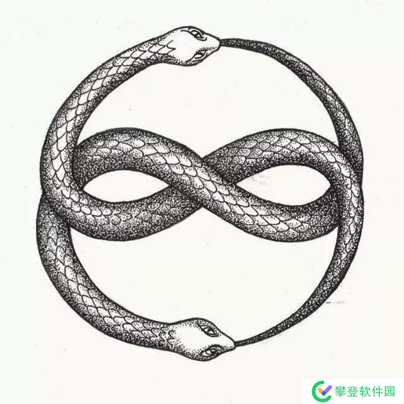 衔尾蛇是古埃及和希腊的象征性蛇,嘴里叼着尾巴,不断吞噬自己并从自己身上重生。