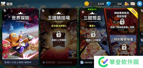 5、在冒险界面中选择你要游玩的模式,刚进入只有世界探险模式解锁,其他模式会随着世界探险的进度慢慢开启,玩家需要将。