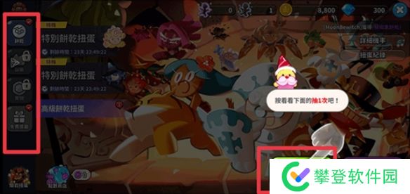 10、游戏中提供了丰富的饼干角色,玩家可以在扭蛋中抽取各种稀有的角色来帮助你战斗,同时还可以抽取各种服装、宝物哦。