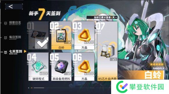 福利方面自然也是大家最关心的了,新手七天签到不仅可以领取五星角色【白蛉】,而且还能获得R5芯片的自选箱!