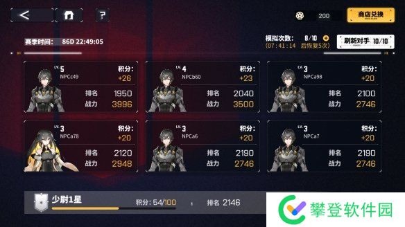 ④、战斗后的积分由玩家与对手的排名差距决定,挑战比自己排名更高的对手能获得更多积分。