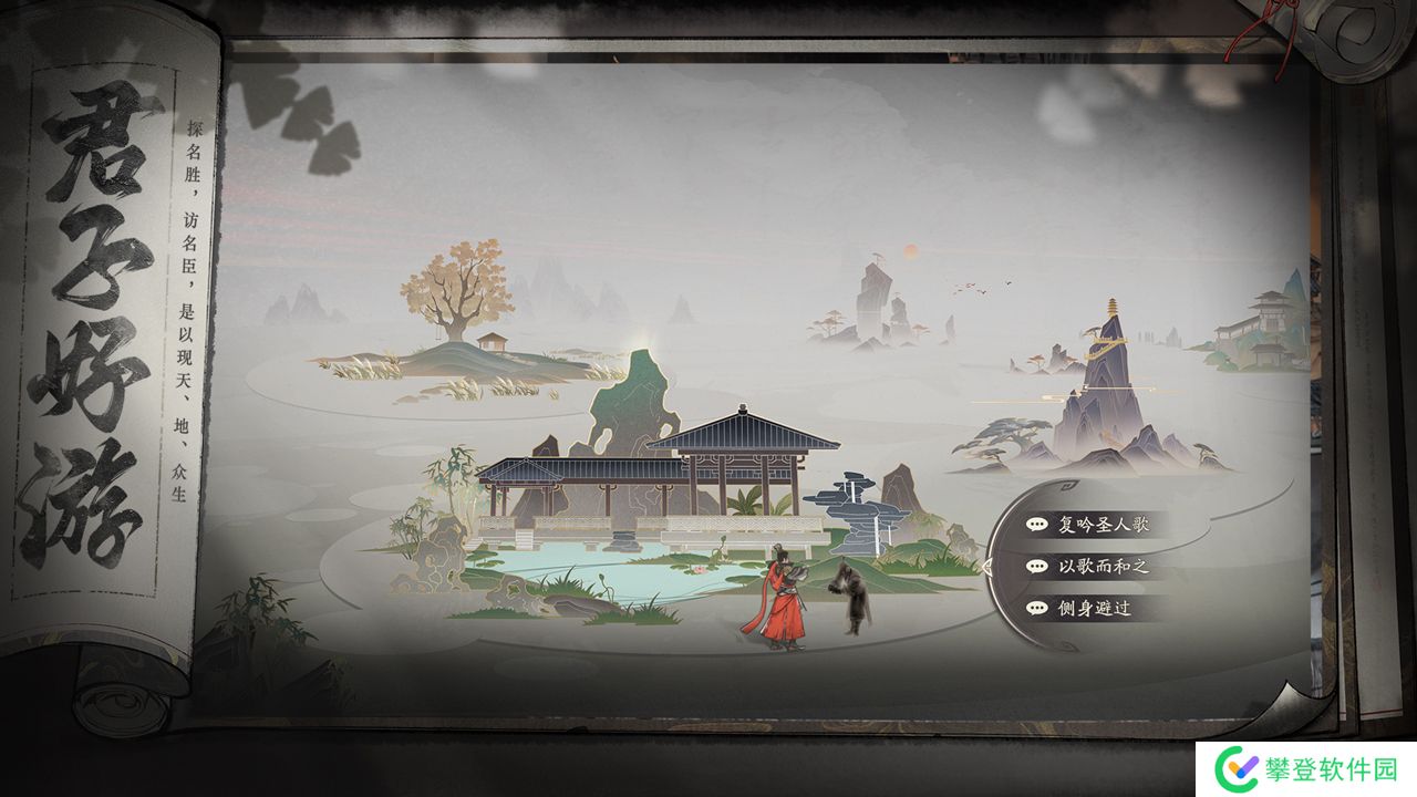 2、在画面设计风格上选用舒适度极高的水墨画风格,经过各种古典乐器进行背景音乐的演奏,然后增加了游戏的趣味度和视听享受感。