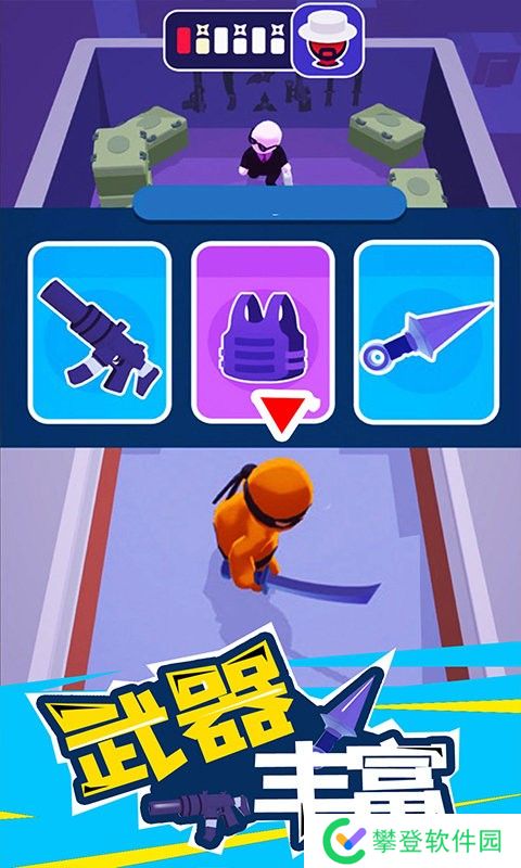 3. 多样的武器装备:游戏为玩家提供了各种各样的武器装备,如刀、手枪、冲锋枪、苦无、飞镖等,玩家可以根据自己的喜好和任务需求选择合适的武器。