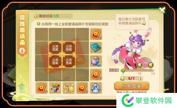 1.每日活跃度到达60、100时可获得邀请函碎片;