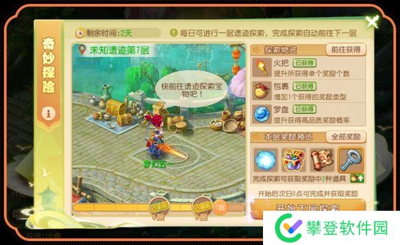 2.遗迹共有8层,完成探索后自动进入下一层,首次到达第4层和第6层可获得额外奖励;