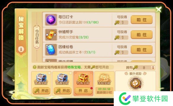 3.少侠可以通过完成每日任务获得宝箱钥匙;