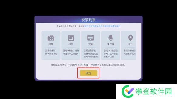 2、需要授予游戏必要的权限,包括但不限于相机、设备信息、相册访问、麦克风使用以及定位权限等。