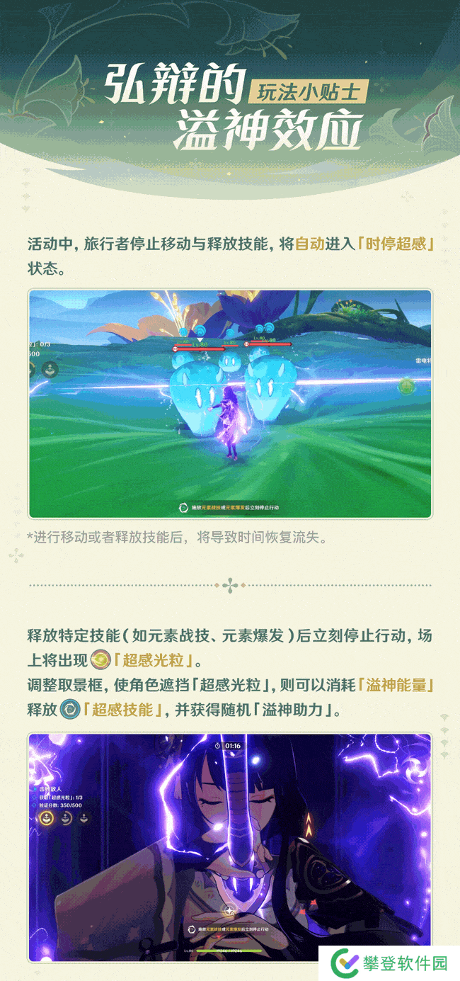 版本更新后,新增「尘世闲游·钟离(岩)」、「霆霓快雨·刻晴(雷)」的挑战关卡和游迹特效。