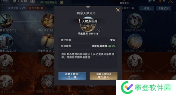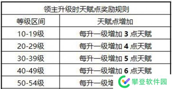 3、领主在学习天赋时,需要消耗天赋点,天赋点是通过领主升级获得的。