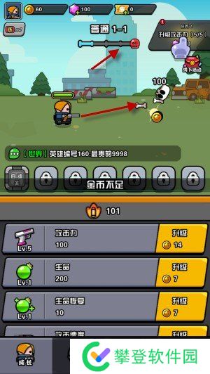 3、如果觉得自身实力不足,可以消耗金币来提升各项属性。