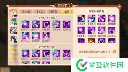 宠物技能配置与宠物打书和宠物装备紧密相关,修士们初次获得宠物时,宠物会自带一些技能,但这些技能可能并不完美,因此就需要借助打书系统,点击【学习技能】进入技能学习页面,左侧会展示系统根据当前宠物特性推荐的技能,修士们可参考这些推荐来学习对应的技能,但请注意,打书存在随机性,可能会覆盖您想要保留的技能。