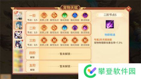 当宠物升至特定等级时,即可进行进阶,进阶不仅能提升宠物的【资质上限】,还能解锁【天赋系统】。