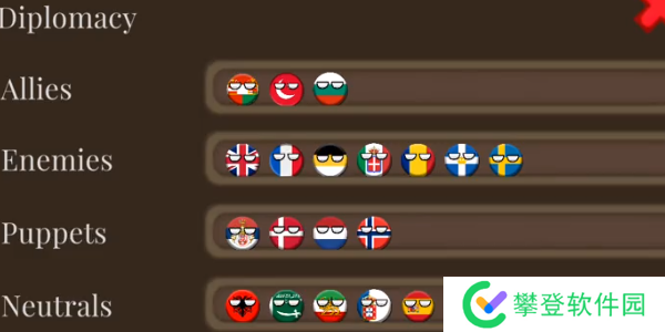 4. 外交与战略:与其他国家进行外交互动,可以结盟、宣战或成为傀儡国家,根据战场形势调整自己的战略目标。