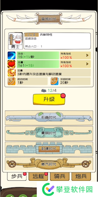 2、击败敌人后,玩家将获得一些游戏奖励,这些奖励可用于提升自己所在时代的科技发展,包括农业、工业等各个领域。