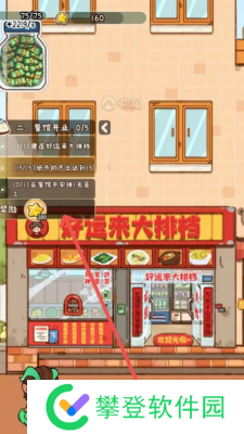 1、打开游戏,在里面修建大排档并完成建设,点击奖励。