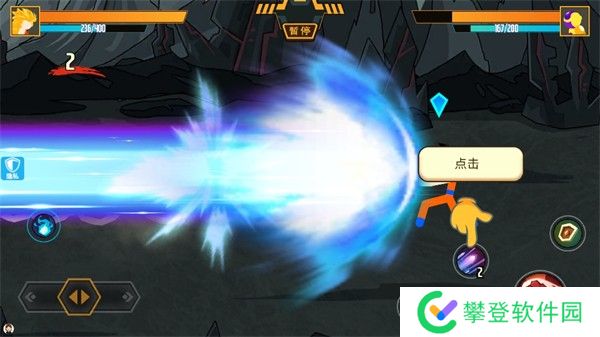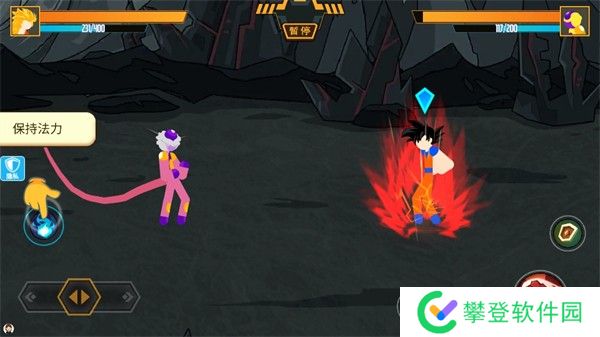 2. 关卡挑战:进入关卡后,玩家需要操控火柴人角色与敌人进行战斗,通过左右移动、跳跃、攻击等方式击败敌人,并收集能量球来增强自己的力量,解锁新技能。
