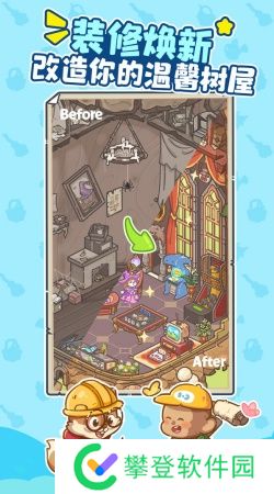 3、这里的画风设计都很可爱,还有许多休闲解压的过程,装修树屋也会很治愈哦!