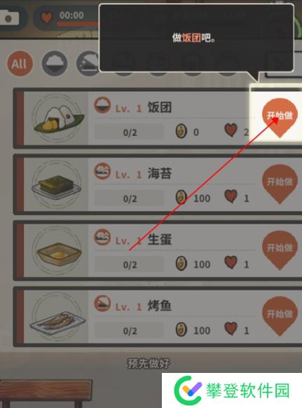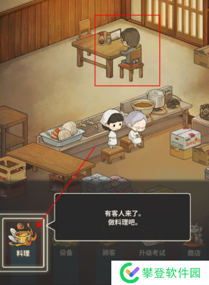 4、有顾客来店里的时候,玩家就需要准备食物,点击料理,开始烹饪制作。