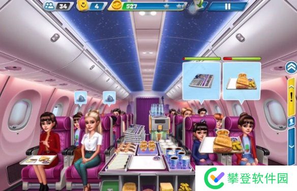 1、游戏创造性地融合了飞行冒险和厨艺模拟,玩家将会在飞机上提供服务,会收集到各种各样的食物,并且做出不同国家的食物。
