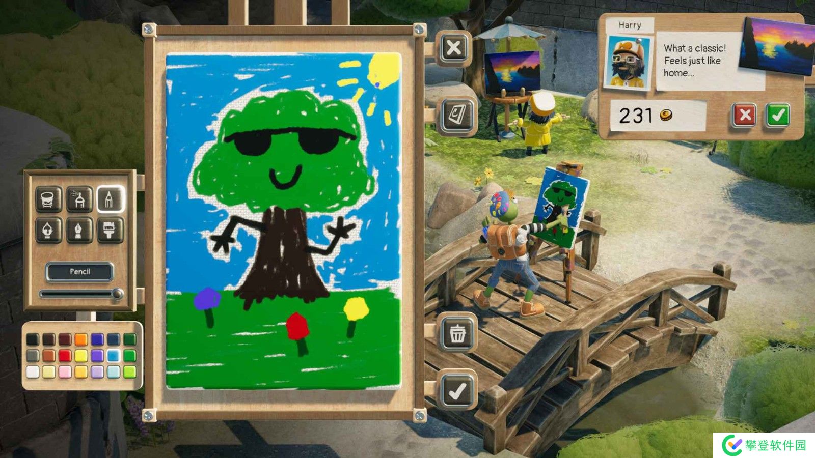 1. 绘画创作:玩家可以使用便利的可折叠画架,在小镇的街头或工作室中创作画作。随着游戏的进行,玩家可以解锁更多高级的画具和颜料,提升画作质量。