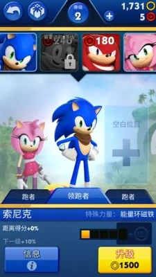 1、游戏的操作非常简单我,玩家需要控制角色索尼克来完成不同的跑酷挑战即可哦。