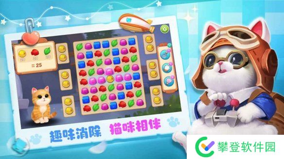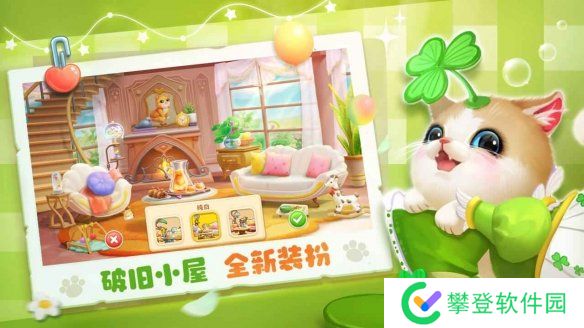 1、玩家将偶遇路边被遗弃的可怜小猫咪,通过一次次消除闯关为小猫打造一个温馨快乐的猫咪乐园。