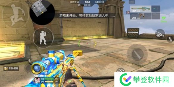 2、玩家们进入到游戏场景内后点击武器标旁边的x图标。