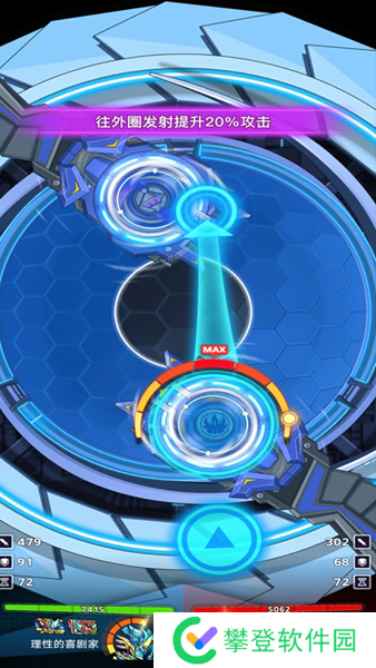 对战时,玩家实时操控陀螺移动、攻击,借助地形反弹、加速带助力等技巧主导战局。