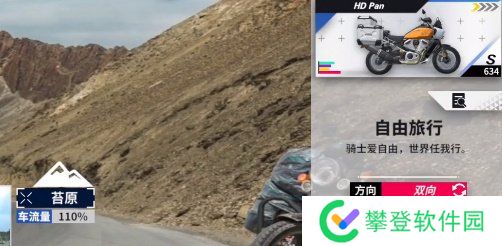 1、自由旅行模式有着开放式的玩法风格,可以驾驶摩托车漫无目的旅行,在庞大世界驾驶并欣赏精美的世界景观。