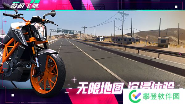 丰富的地图场景,从赛道到城市,每个场景都有精美绝伦的风景,可以随意的驾驶摩托车狂飙。