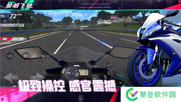 1、多样化的驾驶过程和竞速挑战玩法,精美画面搭配摩托车的引擎声效,展开一场真实的摩托驾驶。