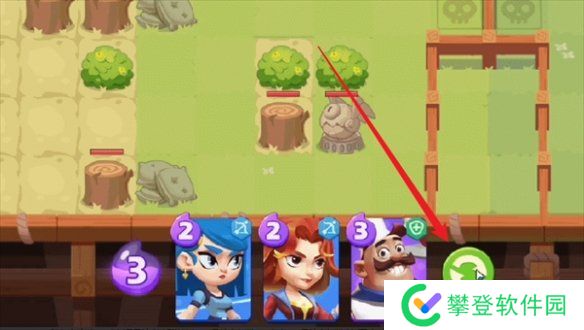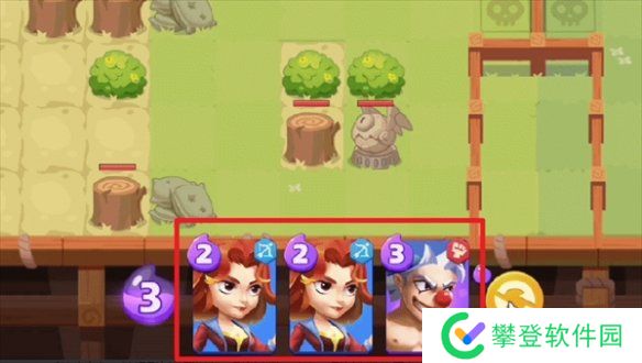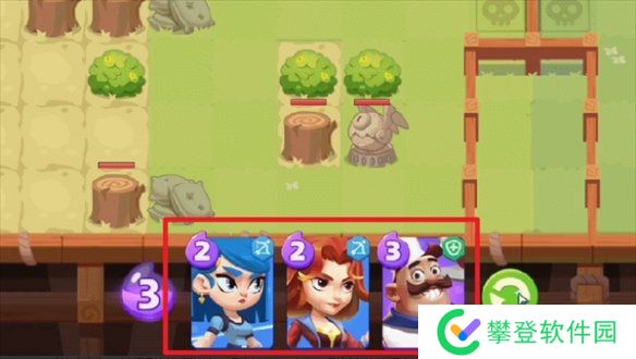 1、进入关卡之后会在卡牌栏里面刷新三张卡牌。