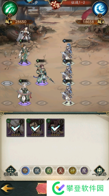 1、游戏采用精美的漫画形式生动的为玩家呈现出经典的三国故事,为玩家打造了栩栩如生的人物形象。
