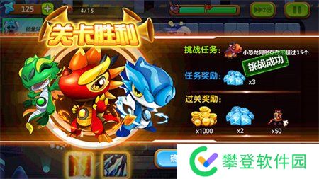 6、胜利完成关卡后,你将获得大量的钻石和金币奖励。