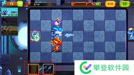4、将你选定的恐龙拖动到布阵方块中,完成作战队伍的部署。