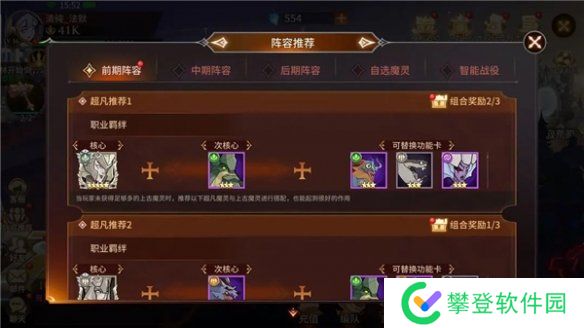 游戏为玩家准备了不同时期的卡牌阵容搭配,和以目前已有卡牌来进行搭配的随心搭配。