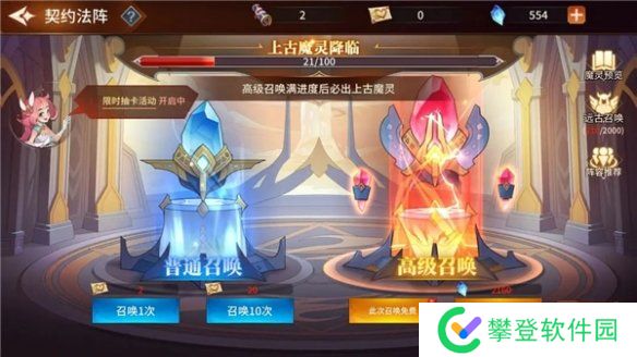 玩家可以在契约法阵和远古祭坛中抽取卡牌,更有机会获得珍稀的上古魔灵。