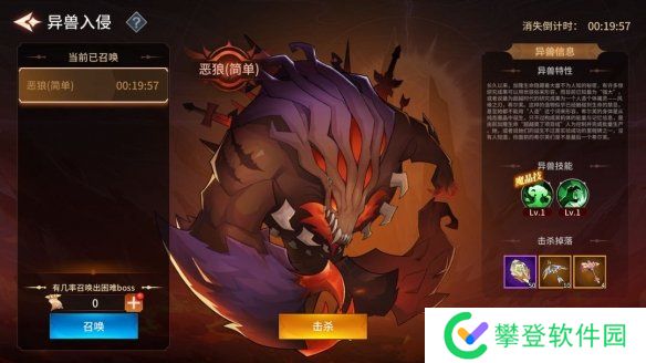 每一段时间,异兽boss将携带众小怪来袭,抵抗异兽也可以获得大量神器碎片。