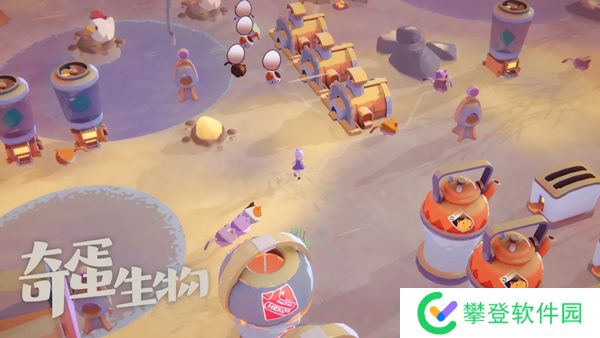 1、首先刚开局一直砍树,后面开第三块区域需要很多木头(第二区域树砍完基本不会再刷,资源比较均衡的只有刚开局那块地,在餐车前面建一个石头机两个伐木机两个煎蛋就够)石头开采很快,放置采石机不久就可以开启鸡区,鸡区上面放四个煎蛋,下面三个煎蛋先采。