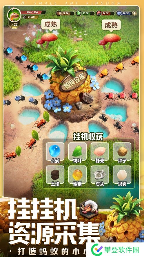 小小蚁国苹果版是非常写实化风格的休闲策略游戏,在新的赛季上线之后,玩家们登录即可获取到橙色蚂蚁成员,同时各种全新的地图已经全面开战,站在最为低端的视角下,进行微观探索。