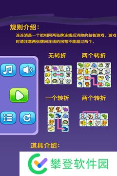 3. 消除图案:在限定的时间内,玩家需要点击相同的图案进行消除,注意连线不能超过两个弯,且不能从尚未消去的图案上经过。