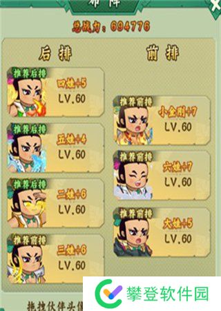 考虑到后期开局时角色即拥有怒气,六娃放置越靠前,其他葫芦娃就能越早享受到他的减防效果,因此,六娃的位置应尽量靠前。