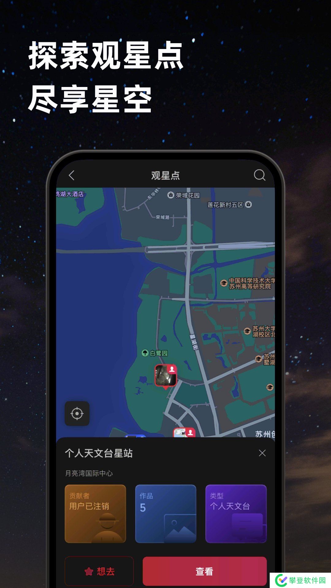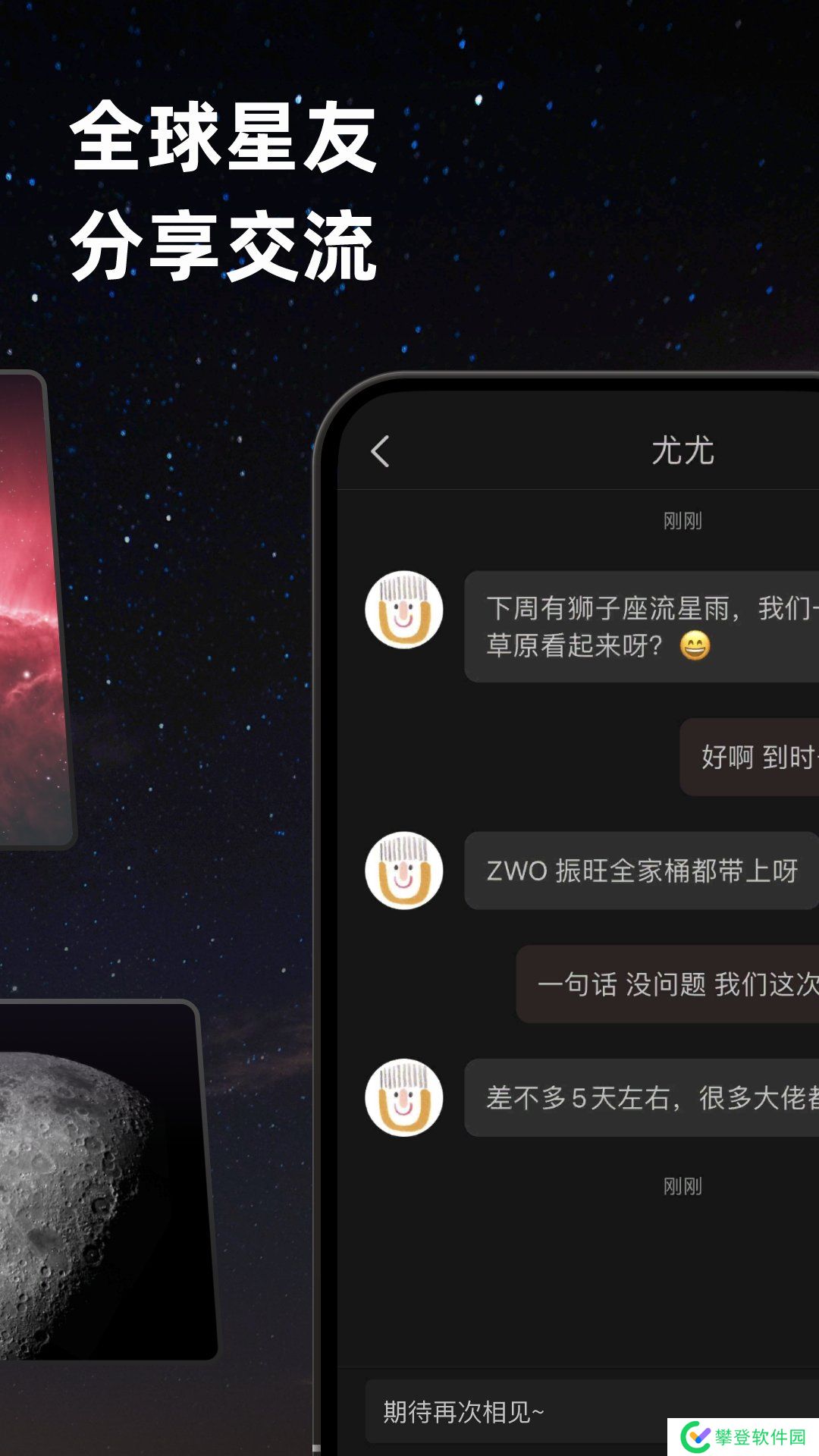 2、还能随时随地搜索附近的观星点,与星友畅聊互动,分享自己拍摄的作品;