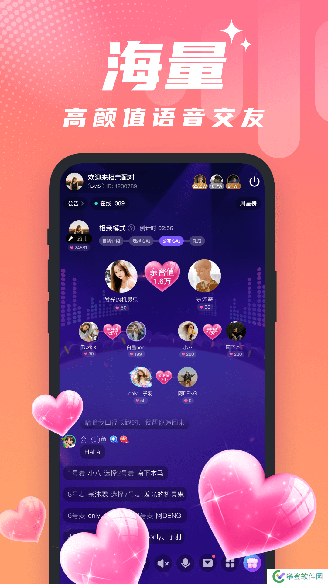 心间app测评1、有很多不同类型的语音室等着你加入,比如相亲、娱乐、唱歌、玩游戏、pias和玩CP;