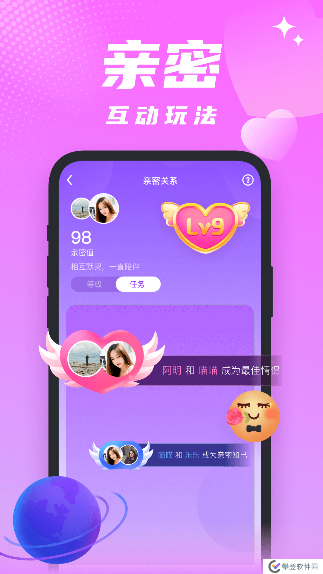 2、与感兴趣的TA组成一对情侣、知己和密友。你可以解锁许多游戏,让你不再孤独和寒冷;