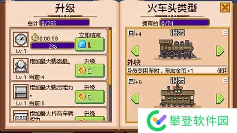 3. 自由定制和升级:玩家可以升级和定制火车的速度、乘客容量和车厢重量等属性,通过赚取金币来解锁新的车厢和火车,提升火车的性能和服务设施。