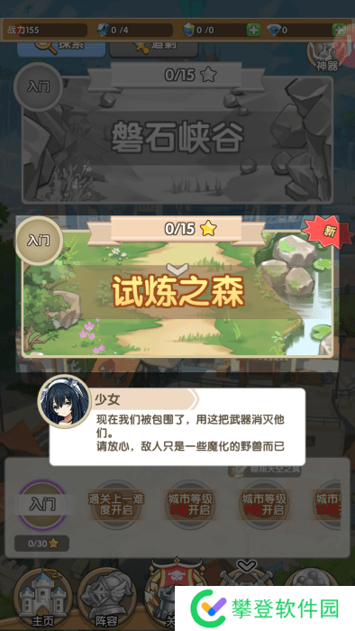 4、在关卡选择界面,从入门级别开始你的战斗旅程吧。